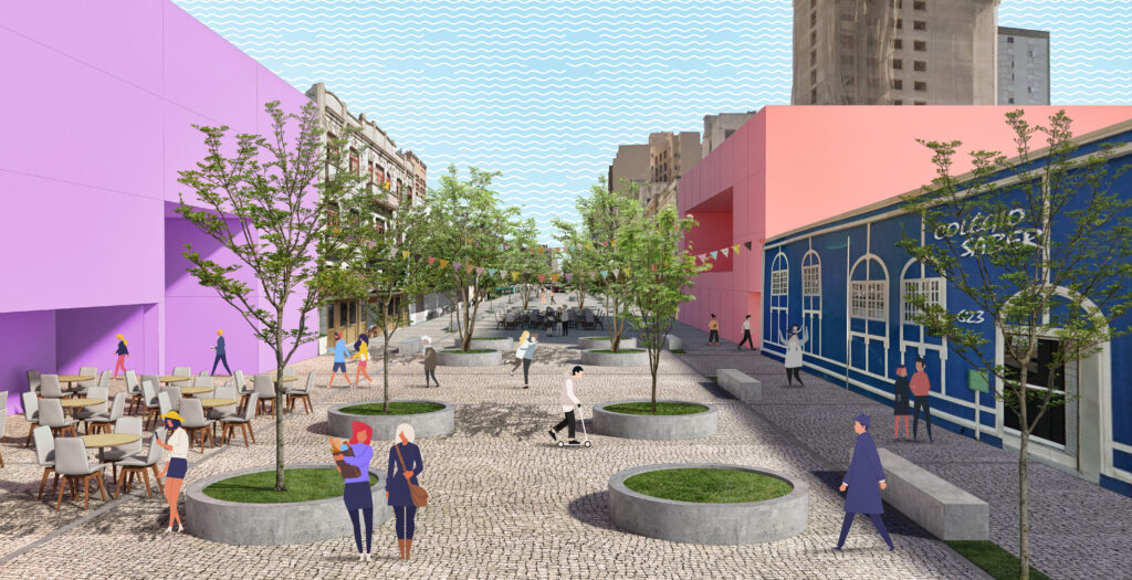 Promoção da diversidade de usos e funções culturais através da revitalização da paisagem histórica do centro, propondo a restauração de edifícios patrimoniais, resgatando e fortalecendo uma identidade regional.